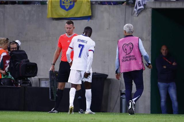 报道指出,登贝莱将离开法国国家队的集训这一结果并不意外。他在周五晚间于波兰弗罗茨瓦夫进行的法国队对阵乌克兰的比赛(2-0 胜利)中右大腿受伤,仅仅在下半场替补登场几分钟后便被换下场。